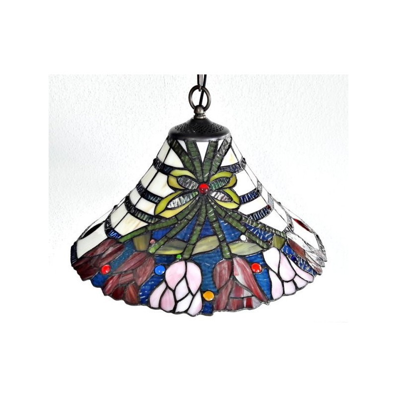 Der Schirmdurchmesser dieser hübschen Tiffany-Deckenleuchte beträgt ca. 40 cm. Der Schirm ist 20 cm hoch. Die Gesamtlänge beträgt 137 cm kann jedoch durch kürzen der Kette beliebig reduziert werden.. Beleuchtet wird diese schöne Tiffanylampe durch eine Glühlampe mit E27-Gewinde bis max. 60 W. oder LED/ max. 9W. warmes Licht nach Wahl.