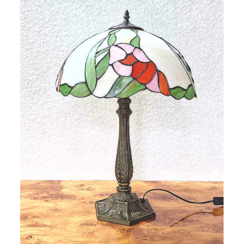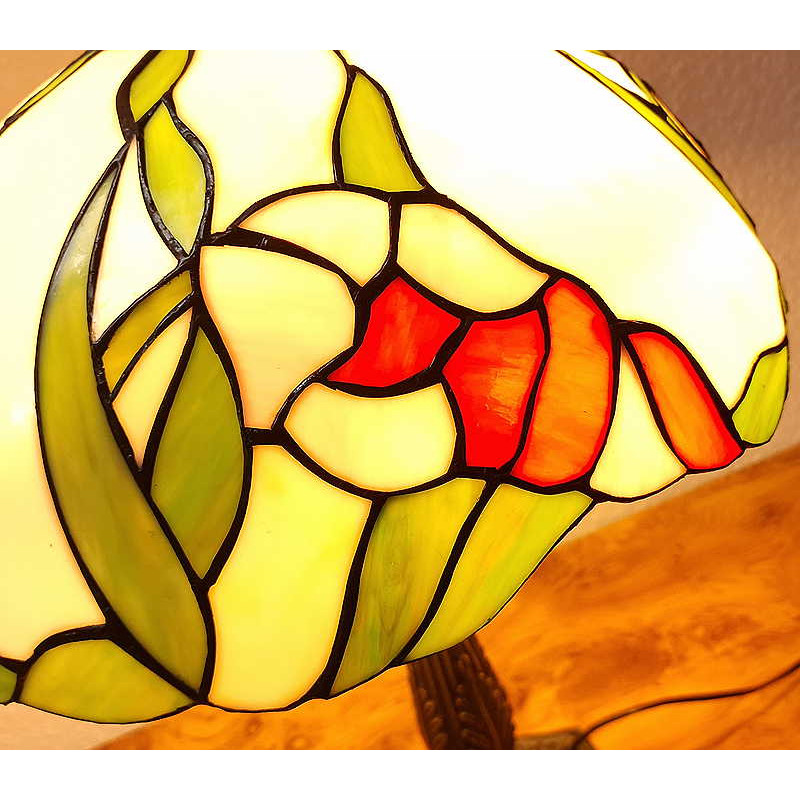 Die Beleuchtung dieser Tiffanyleuchte erfolgt durch eine Glühlampe E27 max. 60 W. oder LED warmes Licht E27 mit 1- 9 W.