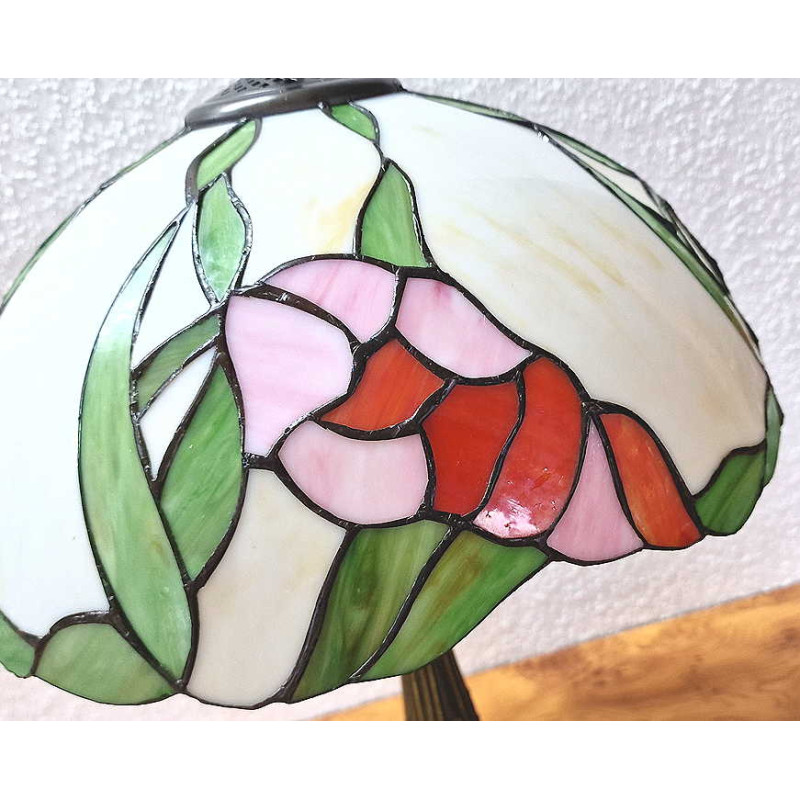 Diese Tiffanylampe ist ca. 60 cm hoch, der Durchmesser des Schirms beträgt ca. 40 cm.