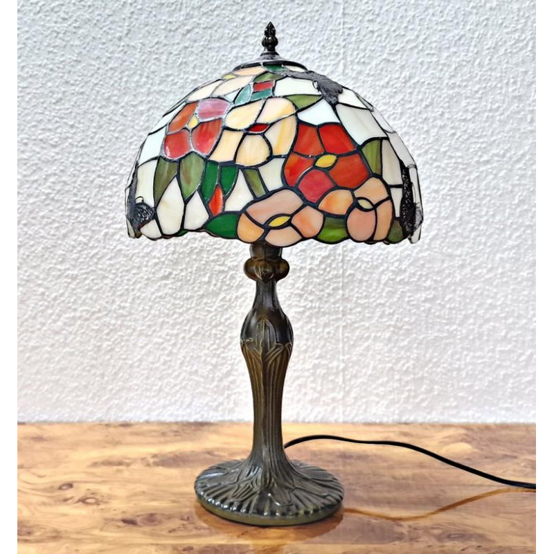 Tiffany-Lampe mit verziertem Fuß.