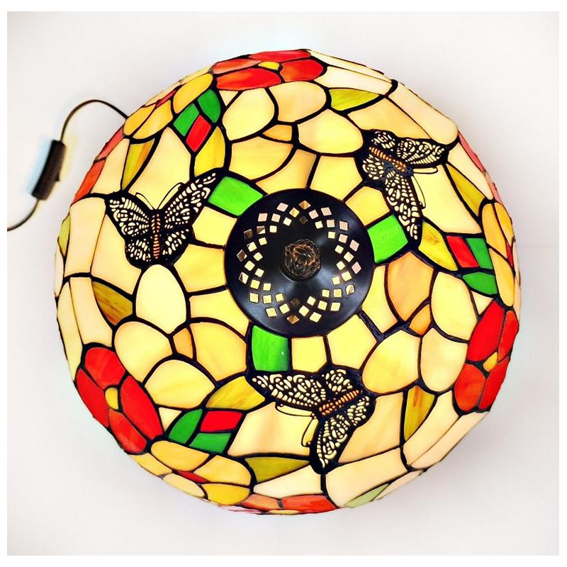 Die Beleuchtung dieser Tiffanyleuchte erfolgt durch eine Glühlampe E27 max. 60 W. oder LED warmes Licht E27 mit 1- 9 W.