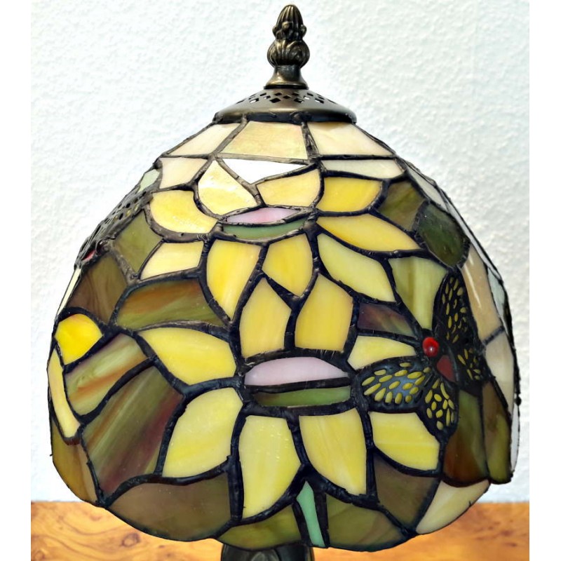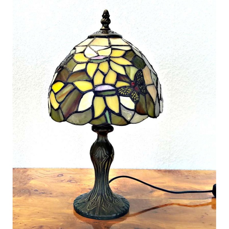 Diese Tiffanylampe ist ca. 36 cm hoch, der Durchmesser des Schirms beträgt ca. 20 cm.