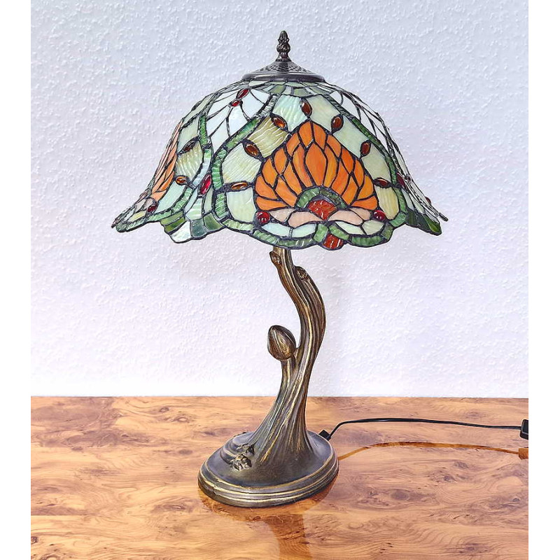 Diese Tiffanylampe ist ca. 56 cm hoch, der Durchmesser des Schirms beträgt ca. 40 cm.