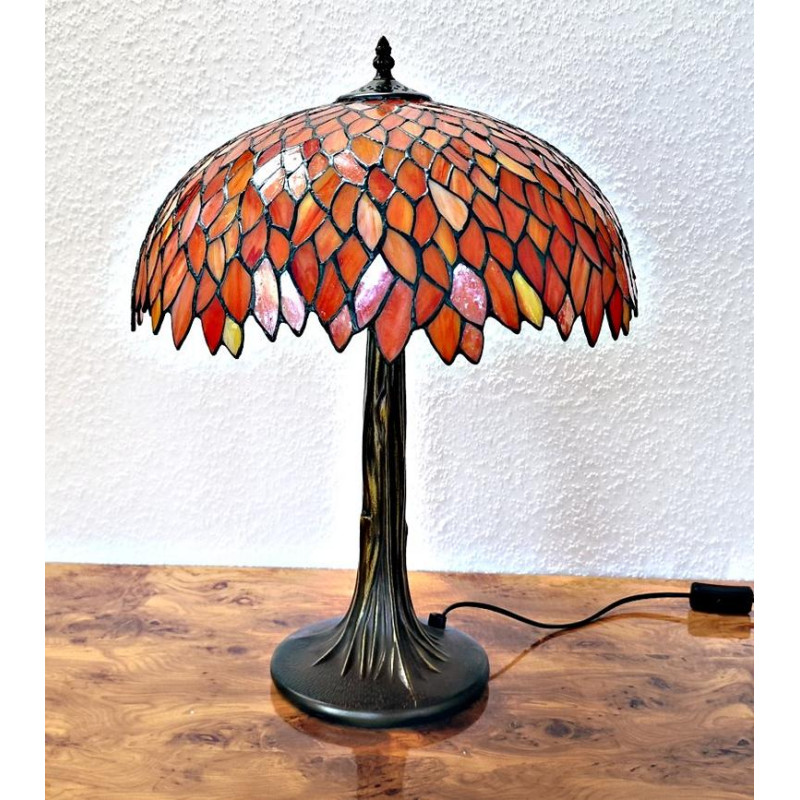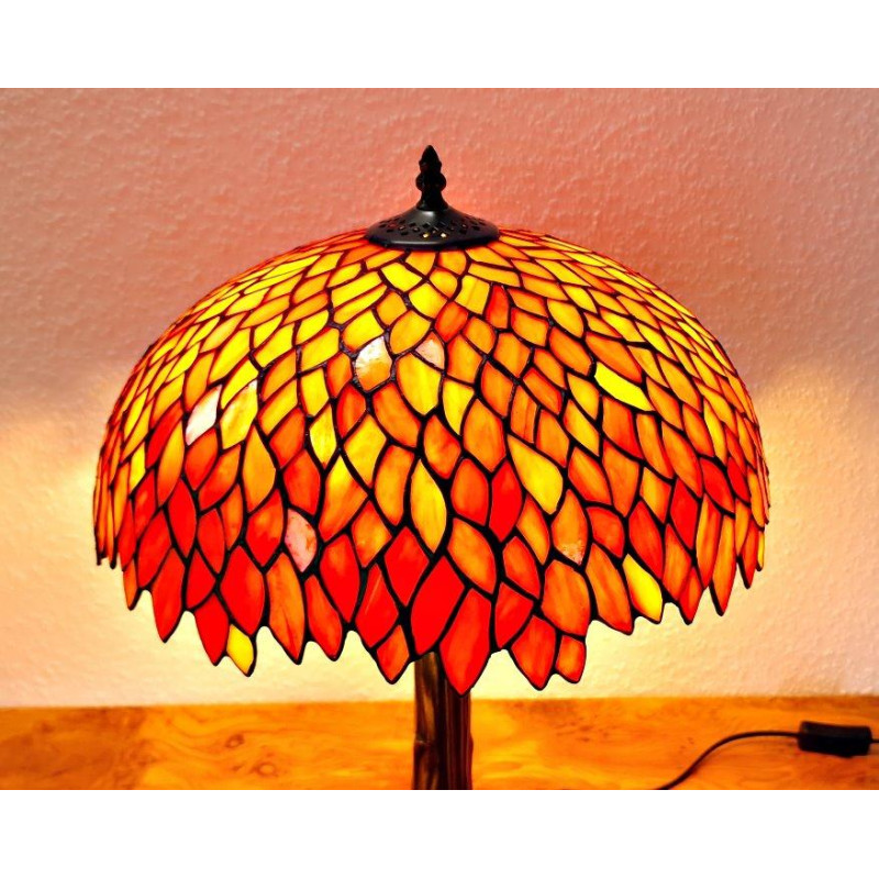 Diese Tiffanylampe ist ca. 60 cm hoch, der Durchmesser des Schirms beträgt ca. 40 cm.